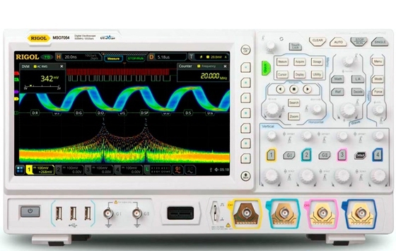 Цифровой осциллограф DS7034 сочетает в себе отличные технические характеристики и широкие функциональные возможности. Новейший процессор "Phoenix", разработанный компанией Rigol, обеспечивает частоту дискретизации в реальном времени до 10 Гвыб/с, а технология UltraVision 2 позволяет увеличить размер глубины записи до 500 М точек, скорость захвата осциллограмм до 600000 осц/с, а максимальный размер кадров при анализе осциллограмм до 450000. В цифровом осциллографе DS7034 применен большой сенсорный дисплей, что наряду с традиционными органами управления на передней панели прибора делает пользовательский интерфейс простым и удобным.